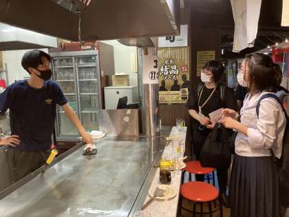 お好み焼き店の方と親しくなり、早速観光大使たちは、果敢に八尾をPRしています。