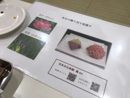 日本文化体験庵an京都の練り切り和菓子体験の様子です。