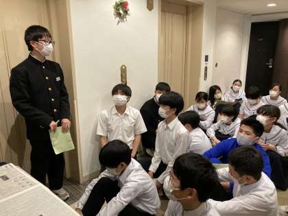 夕食会場からホテルに戻り、班長会を終えて生徒は就寝しました。