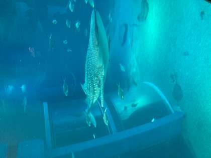 有名なジンベエザメです。日本中でジンベエザメのいる水族館は数少ないのですよ。