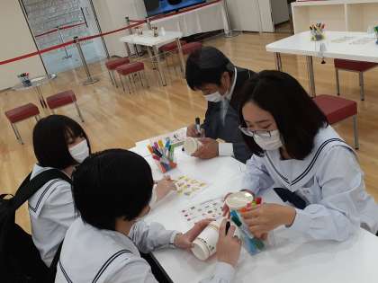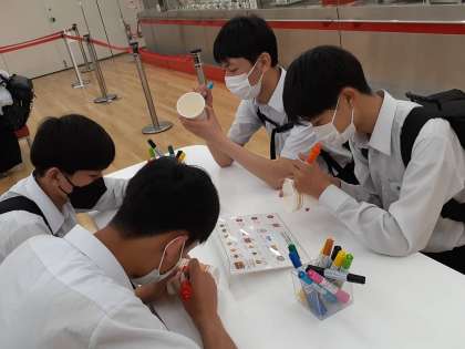 4組は、カップヌードルミュージアムでオリジナルカップヌードルづくりにチャレンジ!