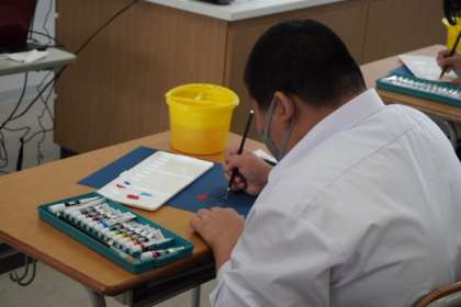 アクリルガッシュで色を塗るときはみんな慎重に、丁寧に取り組んでいます。