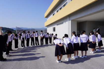水やりをする生徒、あいさつ運動をする生徒、それぞれ自らの仕事に一生懸命取り組んでいます。
