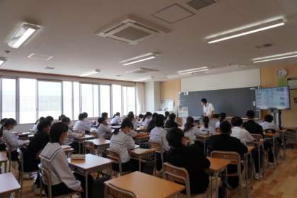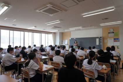 先生の「授業時にあいさつをする意味は?」という問いに対し、生徒は「きりかえ!」と答え、朝学活終了時のあいさつでは、いつも以上に姿勢を正していました。