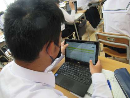 本校では、毎日、学習時間の予定を立てて家庭学習に取り組み、翌朝、chromebookに昨日の学習時間を入力するシステムを導入しています。