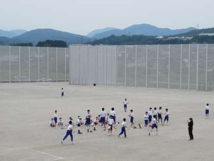熱中症対策を講じながら、持久走に全力で取り組んでいます。