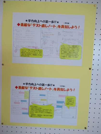 テスト直しノートのよい例が3年生の廊下に掲示してあります。よいものはどんどん取り入れていきましょう。