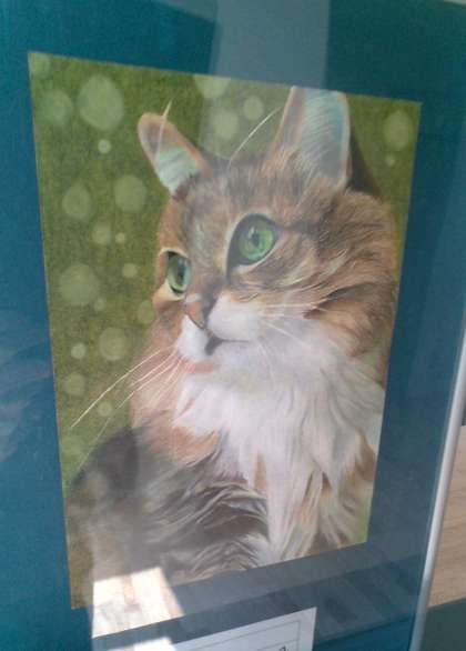 下の写真は部員の新作です。色鉛筆で描いてあります。毛並みの質感が素晴らしいですね!