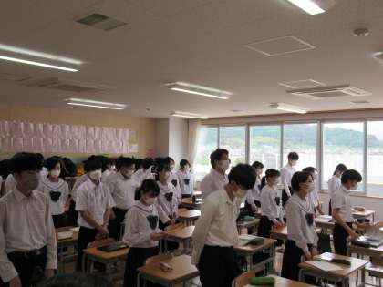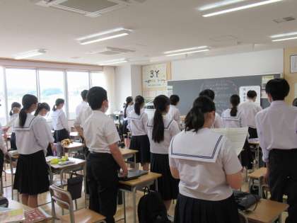 生徒会プロジェクト、5月30日(月)の校歌録音に向けて、朝の会で校歌練習をしています。