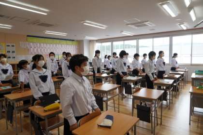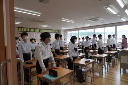 今日も朝学活の時間に校歌の練習を行いました。
