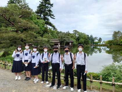 兼六園内で記念撮影しました!