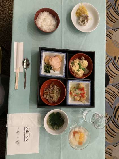 豪華なメニューです。一言も声を発せず、黙食中。素晴らしい!!