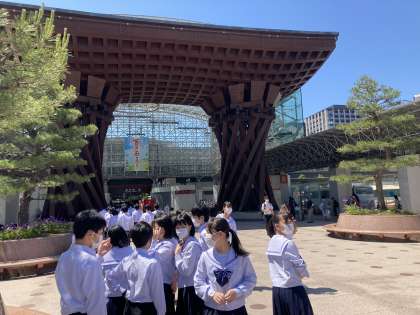 5月27日(金) 2年生 校外学習 金沢駅前にて 1組