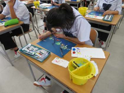 5月31日(火)1年生 美術「山の中のふしぎな街」