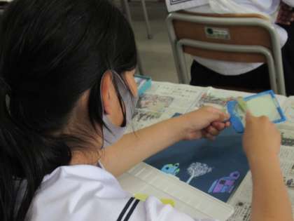 いよいよ完成です。歯ブラシを使って色を付けると、一段と素敵になりますね。