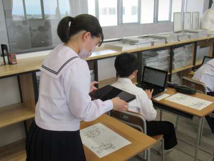 6月2日(木) 2年生 美術 鳥獣戯画の模写で漫画づくり