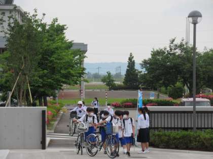 昨日は、30度近くまで気温が上がったようですが、今朝は曇り空で少し肌寒さを感じるくらいです。生徒は元気に登校してきました。