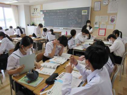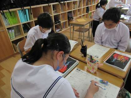 グループで教え合いながら、振り返っています。