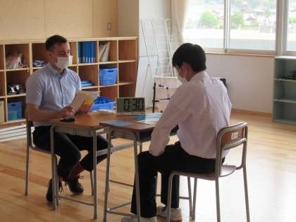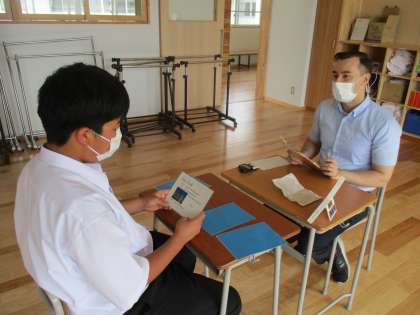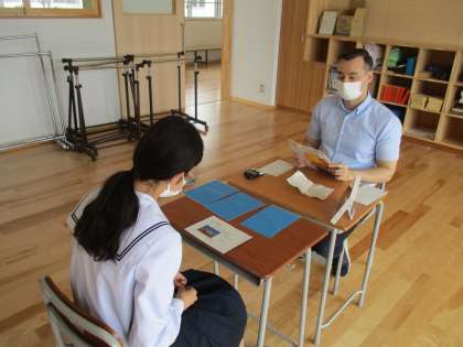 夏休みの旅行計画を想定して、それについての質問に臨機応変で答える練習です。友達同士では何度も練習してきましたが、外国人の先生相手なので緊張しています。