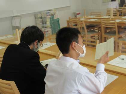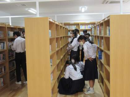 写真は、2年生のオリエンテーションの様子です。待ってましたとばかりに、本選びに夢中です。