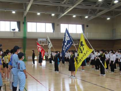 全力を出し切って、次につながるよい大会となるよう、教職員、全校生徒全員で応援しました。