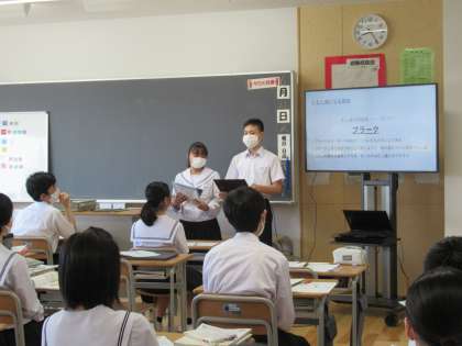 保健委員会では歯と口の健康への意識を高めるため、歯について調べたことをクラスで発表しました。