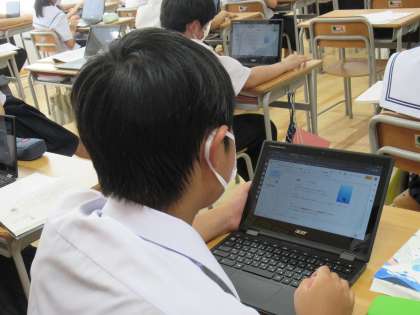 chromebookのプレゼンテーションを活用し、シートを作成しています。