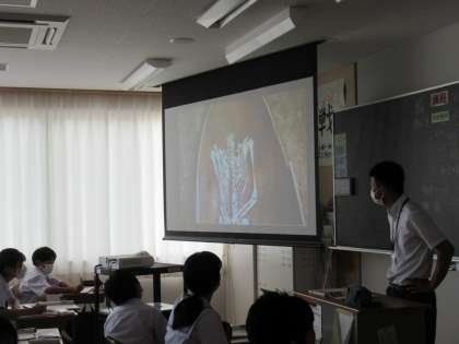 授業のまとめは、ビデオ視聴を通して行っています。生徒は真剣に視聴し、大切なことはノートに書き留めています。