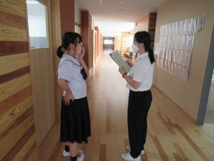 1人ずつ、廊下で教科担任の先生の質問に答える「パフォーマンステスト」を行っています。