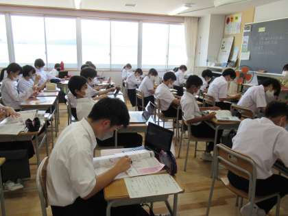 学習委員会が、教科担当の先生にも見ていただき作成したA4用紙1枚の予想問題に全校でチャレンジしています。