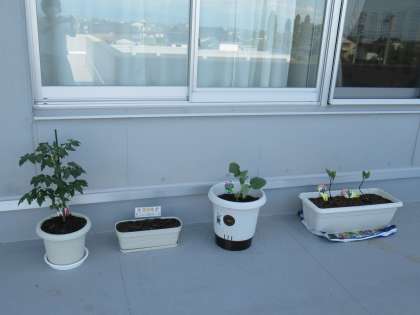 植物を植えたプランターは、生徒玄関上の一番日当たりがよく眺めのよい場所に設置しました。