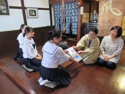 生徒会の「素敵な歌声を届けようプロジェクト」で録音した校歌のDVDを柴田さんのお母様に渡していただくようご親戚の宮田旅館様に届けました。