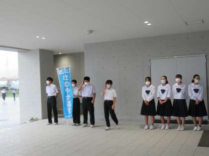 生徒会執行部は、あいさつ運動展開中です。