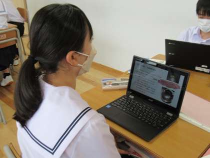 作成したスライドは、chromebookで共有し、それを見ながら聞いています。