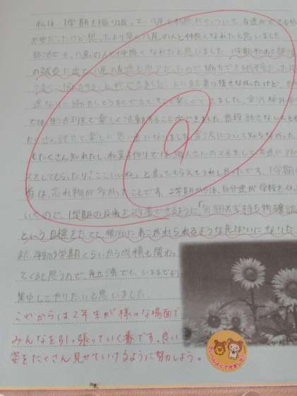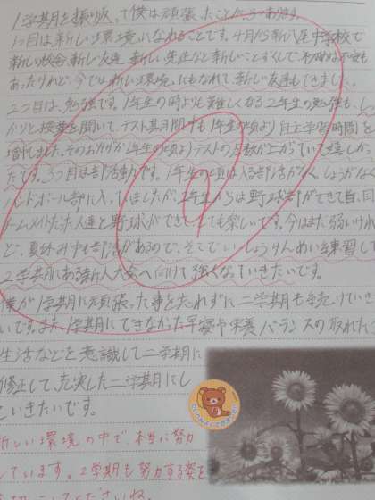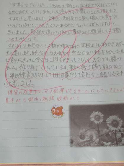 「新しい友達、新しい先生等、新しいことずくしで不安だったけれど、新しい環境になれて部活動に学習に頑張ることができた」