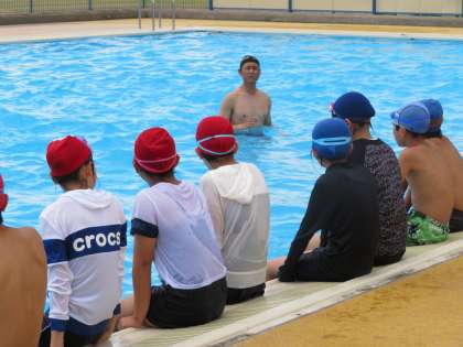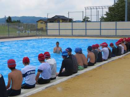本校保健体育科の先生が、地域の小学校に出向き、水泳の指導を行いました。