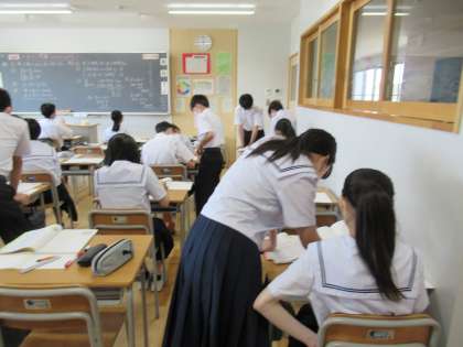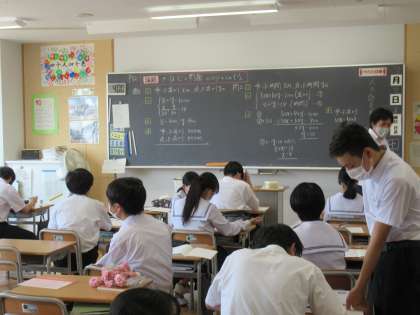 7月7日(木) 2年生 数学 2次方程式 公開日 2022/07/07 更新日 2022/07/07 2学年 「き・は・じ」の問題のコツを掴むために、問題演習をしています。 まずは、自力で解いてみて、その後自由に友達と教え合うスタイルの授業です。