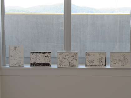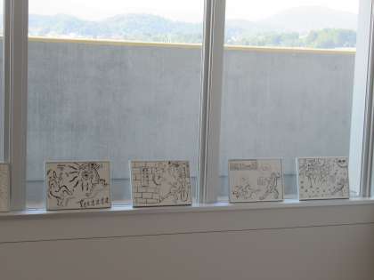 7月9日(土) 2年生 美術 鳥獣戯画の模写を使って その1 公開日 2022/07/09 更新日 2022/07/09 2学年 1年生の作品に加えて、今度は2年生の作品が階段に掲示してあります。 学校がアートギャラリーのようになっています。素敵です。 鳥獣戯画の模写から漫画のワンシーンを描いた作品です。面白い作品揃いです。