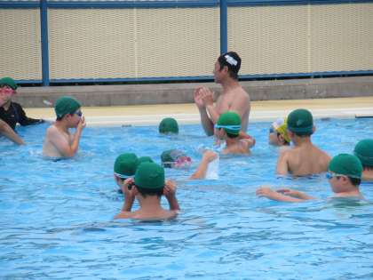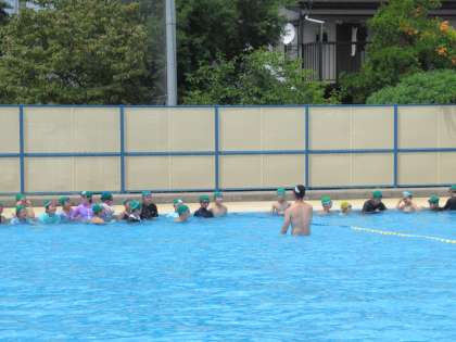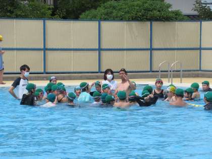 7月8日(金) 今日も小学校へ特別授業に 公開日 2022/07/08 更新日 2022/07/08 八尾中学校のページ 小中連携の一貫として、本校保健体育科教員が、校区の小学校で水泳教室に指導者として行きました。前回は、5・6年生、今日は4年生を対象に指導しました。 だるま浮き、平浮き、、、等楽しく活動中です。暑いので、水の中は気持ちよさそうです。