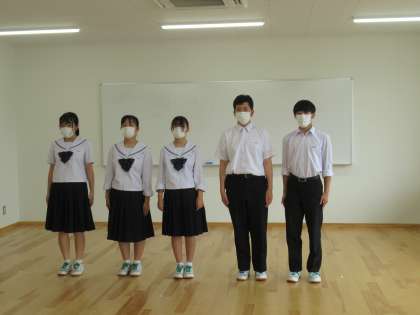 生徒会長が激励の言葉と、全校に、「応援に行くことはできない分、応援の気持ちを届けることができるよう努めましょう」と述べました。