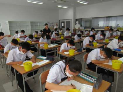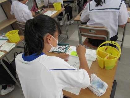 7月11日(月) 1年生 美術 平塗りで色を付けよう