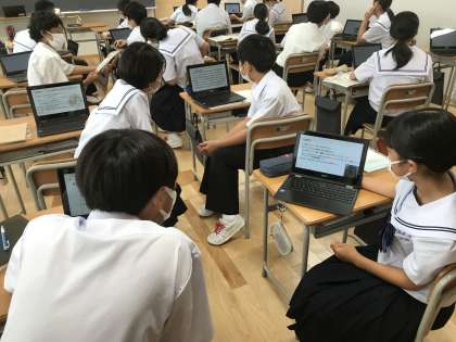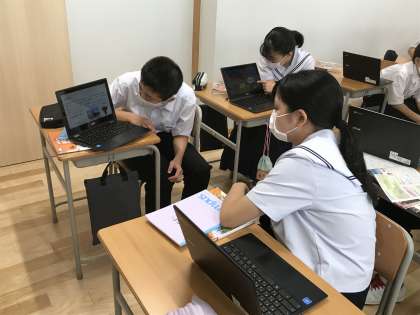 社会科の授業で、一生懸命まとめたスライドを発表し合いました。