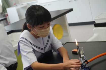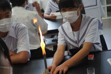 7月12日(火) 1年生 理科 ガスバーナーの使い方 公開日 2022/07/12 更新日 2022/07/12 1学年 ほとんどの生徒が自信をもってガスバーナーを使えるようになりました。 立候補した生徒は、教卓上のガスバーナーを使用して、クラスメイトに説明しながらガスバーナーを付けています。 写真は、生徒が撮影したものです。写っている生徒の表情が自然で、よいアングルで撮れています。