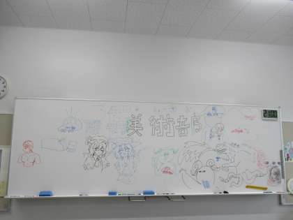 7月12日(火) 部活動写真撮影 公開日 2022/07/12 更新日 2022/07/12 部活動 今日で部活動写真撮影も最後です。屋外で活動する部活動は、先週撮影したので、晴れていてよかったです。 今日は、文化部や屋内で活動する部活動の写真撮影でした。 美術部は、特徴的な絵をホワイトボードに描いて演出しています。