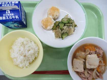 7月13日(水) 今日の給食は? 公開日 2022/07/13 更新日 2022/07/13 八尾中学校のページ 今日のメニューは、 1 ごはん 2 牛乳 3 韓国風すきやき 4 にんじんシューマイ 5 昆布和え です。 今日のメニューは韓国風すきやきです。韓国風とは、にんにく、しょうが等の香味野菜が使われていたり、一味唐辛子等の辛い調味料が入った料理のことです。暑い夏が続きますが、スタミナのつくものを食べて、残りの1学期を乗り切りましょう。