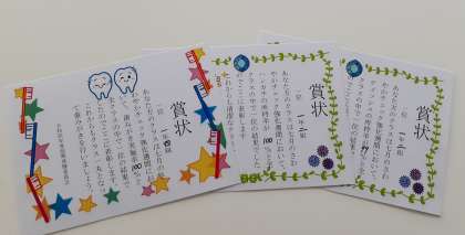「さわやかチェック強化週間」中、最もさわやかな身だしなみで過ごせたクラスに賞状を渡しました。