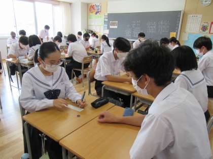 7月14日(木) 3年生 理科 遺伝 公開日 2022/07/14 更新日 2022/07/14 3学年 そら豆の遺伝をカードを使って学習しています。 ペアで、Aとaのカードを出し合い、AA、Aa、、、のような組合せのうち、どれが出たか記録していきます。 さて、何が分かるかな。