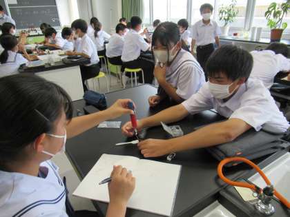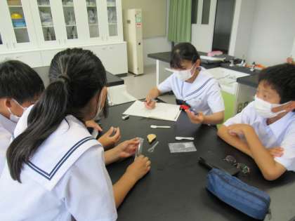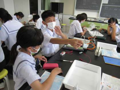 7月14日(木) 1年生 理科 磁石に付くのは? 公開日 2022/07/14 更新日 2022/07/14 1学年 色々な物に電気や磁石を通して、性質を調べています。 オルゴールが鳴るかどうかで確かめている班もあります。