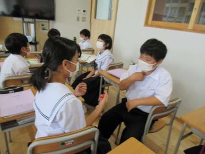 ペアでQAA(質問+答え2文)、インタビュービンゴ、、、と口頭練習をたっぷり行い、自分が好きなことについて詳しく言えるようになりました。対話も広がりそうですね。