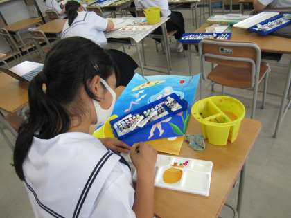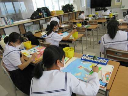 美術部は、出品用の作品の制作に夢中です。
